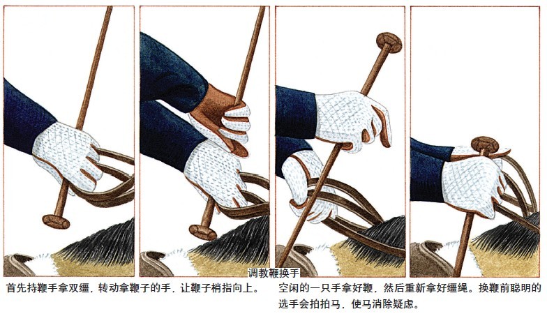 身體的重量 初學(xué)者特別應(yīng)注意坐在鞍子中間,平均分配體重。一旦扭曲畸形習(xí)慣養(yǎng)成是很難改正的。 扭曲習(xí)慣的騎手也會使馬變得扭曲,因為馬總是處于騎手重心之下并朝著重心方向前進(jìn)。 坐姿不正的騎手可通過不一樣長的蹬帶看出。事實上,是很可能由于騎手滑向左側(cè)或右側(cè),就會把身體更多的重量放到相應(yīng)的腳蹬上。 轉(zhuǎn)彎和圈乘的練習(xí)中,當(dāng)馬換方向時,普遍的錯誤是騎手會滑向鞍子外側(cè)。騎手內(nèi)側(cè)髖關(guān)節(jié)垮掉重量放到外側(cè)腳蹬。向內(nèi)側(cè)倒也是錯誤的。 總是偏向一側(cè)的騎手,他跳障礙時,馬匹通常是扭曲的。當(dāng)馬騰空時,騎手偏向右側(cè)馬匹就會向右轉(zhuǎn)。這一點騎手可以加以利用。 必要時好的騎手會用重心給馬一個微妙的影響。特別是在高水平的訓(xùn)練或比賽時,對馬的影響會更大。選手使用重心時,會輕輕向前推動一側(cè)或兩側(cè)髖關(guān)節(jié)。 當(dāng)騎手已經(jīng)養(yǎng)成扭曲畸形的壞習(xí)慣,首先要求他的坐姿兩側(cè)均平穩(wěn)正直,而只考慮重心輔助。 長期畸形的騎手,不僅對自己本身的能力與輔助運用有壞的影響,在這樣使用輔助時也會使馬偏于一側(cè),讓馬僵硬。 騎手的聲音 訓(xùn)練馬匹的過程中,人類的聲音扮演著重要的角色。 自從馬匹與人類相處以來,它就學(xué)會理解人類各種各樣的聲音語調(diào)。這些聲音與喂養(yǎng)時間、愉快、責(zé)備等緊密相連。一般情況下,當(dāng)叫馬匹時它知道過來。對指令也有反應(yīng),例如“立定站好”。 當(dāng)馬匹長大些,就要進(jìn)行打圈訓(xùn)練,它要學(xué)習(xí)不同的要求指令,例如:“慢步”、“快步”、“跑步”、“立定”、“穩(wěn)定”和“很好”。一旦口頭要求變成一系列的身體指令時,我們稱之為“輔助”。但是相當(dāng)長時間那些口頭命令就成為騎手的輔助,這些輔助可以讓馬更明白我們的要求。 即使訓(xùn)練到最高水平,同樣要用到聲音。聲音能夠讓馬愉悅、安靜、緩和、受到鼓舞或是責(zé)備,所有這些取決于騎手如何使用聲音輔助。 馬匹會很快獲悉騎手的感覺,對緊張或攻擊性詞語做出相應(yīng)的反應(yīng)。 騎手的驚恐或尖叫會使馬更緊張。他也可以用溫柔的話語讓馬很快地安靜下來。 要讓馬匹知道它做得很好,這一點至關(guān)重要。騎手的一句:“很好”會讓馬高興并受到鼓勵。責(zé)備的喉音則表明不高興。 要注意用相同的話語,相同的語調(diào),馬匹會對相應(yīng)的聲音語調(diào)有反應(yīng)。 初學(xué)騎手的基本輔助 初學(xué)者應(yīng)知道的第一件事就是如何讓馬匹停止。 騎手的身體是正直的,既不能前傾,也不向后仰。小腿輕輕地靠到馬匹兩側(cè),不應(yīng)夾緊或僵硬。保持與韁的聯(lián)系:輕握住手指,指尖觸到手掌,可控制韁繩的松緊。在馬匹完全明白你的指令之前,騎手可重復(fù)做收放手指的動作。一句溫柔的“哦”“停”都可以幫助馬匹理解指令。記住,每位騎手給馬輔助的方式都略有不同,必須讓馬調(diào)整并適應(yīng)這輕微的變化。 從立定到慢步或快步:騎手與韁保持穩(wěn)定的聯(lián)系,并在小腿的原位置,向內(nèi)輕輕地擠壓馬匹。馬匹做出相應(yīng)的反應(yīng)時,騎手必須注意不要向后拉動韁繩,但一定保持很好的聯(lián)系。 轉(zhuǎn)向:向左轉(zhuǎn)時,騎手應(yīng)保持體重均等地分配到兩坐骨上,左腿向里靠,腳趾不要向外轉(zhuǎn),握緊左手手指,加大與左側(cè)韁的聯(lián)系。當(dāng)馬開始轉(zhuǎn)彎時它的脖頸會向前進(jìn)的方向屈撓。騎手輕微地向前移動右韁, 給它一點。但是不能丟掉右韁,在騎手的手和馬嘴之間必須繼續(xù)保持很好的聯(lián)系。如果右韁太松,馬匹只把脖頸轉(zhuǎn)向左側(cè),然而繼續(xù)直線前進(jìn)而沒有轉(zhuǎn)向。 人工輔助 馬刺和鞭子是大家熟知的人工輔助。初學(xué)者甚至初級騎手不應(yīng)用馬刺,當(dāng)騎手失去平衡或不能控制腿時,他們就會濫用馬刺。 馬刺最長的金屬臂應(yīng)位于腳的外側(cè),馬刺尖朝下,并沿馬靴的縫合處。金屬扣和帶子的末端應(yīng)在腳的外側(cè)。馬刺的末端應(yīng)光滑,避免傷到馬匹。只用馬刺內(nèi)側(cè)碰到馬體。 對初級騎手而言用長鞭或短鞭,是更安全的。 調(diào)教鞭很長,當(dāng)騎手手持韁繩時,鞭子同樣可到達(dá)騎手的腿后。 調(diào)教鞭不適用于跳障礙,應(yīng)用短的障礙鞭。 使用鞭子時不應(yīng)該盲目,當(dāng)馬匹忽略騎手腿輔助時,騎手應(yīng)迅速清晰地用鞭提醒馬,這樣比頻繁地靠馬,讓馬失去感覺效果更好。 可以任意手持鞭,但必要時,應(yīng)該換手。如果馬匹不服從,例如,不服從右腿的輔助,鞭子應(yīng)很快換到右手去幫助腿的輔助。 |