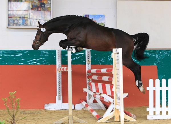 2012 年4 月,Philipp 在Schwartze Hof 組織了一場(chǎng)無(wú)騎手馬匹自由跳躍障礙馬術(shù)比賽。大約30 匹2-5 歲之間的年輕溫血馬參與其中。三位評(píng)委對(duì)每一匹馬的天份和潛力做出了詳盡的評(píng)價(jià)。評(píng)委們工作出色。他們只有一次直接觀察馬匹的機(jī)會(huì),且每匹馬只有5-10 分鐘的亮相時(shí)間,評(píng)委們不可能對(duì)某匹馬進(jìn)行最終的判定,而只能根據(jù)一時(shí)的印象對(duì)其未來(lái)的運(yùn)動(dòng)生涯發(fā)展與機(jī)會(huì)給出專業(yè)的建議。要知道年輕的馬匹每次做無(wú)騎手馬匹自由跳躍障礙時(shí)的表現(xiàn)都有可能大不相同。因此,馬主或教練應(yīng)該永遠(yuǎn)記住馬匹積極的一面。在這次比賽中,有兩匹馬奪得了冠軍,他們分別是一匹2 歲的霍士丹Holsteiner) 母馬和一匹5 歲的奧登堡(Oldenburger)騸馬。當(dāng)然這匹5 歲的騸馬所跳躍的障礙相對(duì)于2 歲馬更難些,但是兩匹馬都向大家展示了它們過(guò)人的天賦和潛力。 什么是無(wú)騎手馬匹自由跳躍障礙?