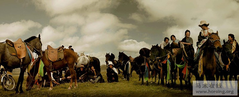 雄偉遼闊的青藏高原孕育了雪山、河流,還有遼闊的草原,那些世代在草原上游牧的人們,對(duì)馬有著由衷的敬意。在他們的生活里,馬是不可缺少的生活助手和最好的伙伴,在宗教和傳說故事中,馬一直都是吉祥、勇敢、善良的化身。 人生儀式與馬 在西藏人民的生活中,馬有兩種用途,一種是用來馱運(yùn),一種作為交通工具。有時(shí)候家里的孩子會(huì)騎著馱運(yùn)的馬玩兩下,但作為交通工具用的馬,是不能用來馱物的。藏族人崇尚白色,尤其崇尚白色的馬,認(rèn)為是菩薩的化身,是吉祥之物。因?yàn)殚L久以來的共同生活,在遼闊的牧區(qū),人對(duì)馬也有了依賴的感情。 在藏地隨處可見的飛舞的經(jīng)幡(“隆達(dá)”)上,分別用五種顏色(白、黃、紅、綠、藍(lán))、五種動(dòng)物(寶馬居中,大鵬金翅鳥、龍、獅、虎圍繞)代表金、木、水、火、土五行,寓意五行循環(huán)往復(fù),生命經(jīng)久不息。在藏地,只要是印有以上圖案的統(tǒng)稱為經(jīng)幡,無論是迎風(fēng)招展的織物,還是印刷而成的小小的紙片,它們?cè)诓卣Z里稱為“隆達(dá)”,“隆”是風(fēng)的意思,“達(dá)”是馬,通常在隆達(dá)上繪制的馬的數(shù)量也有差別,有一馬、四馬、十馬等不同的圖案,以十馬為至尊。風(fēng)馬的確切含義是:“風(fēng)會(huì)傳播印在經(jīng)幡上的經(jīng)文到遠(yuǎn)方,是運(yùn)送經(jīng)文的一種無形的馬,而馬即是風(fēng)。”人們通過懸掛和拋撒“隆達(dá)”,寄托自己希冀和追求美好生活的心愿。 而每個(gè)家庭中的男主人,必須要有一匹馬,如果是好馬,是很讓人羨慕的事,生活條件好的家庭都會(huì)為男孩子準(zhǔn)備一匹馬。男孩子一般在6 歲左右開始騎馬,如果超過8 歲還不能駕馭馬匹,會(huì)被同齡的孩子視為“窩囊”的小孩。 藏族牧區(qū)的日常生活中,比較偏愛走馬,走馬的耐力好,節(jié)奏平穩(wěn),速度均勻,是遠(yuǎn)行時(shí)最好的代步工具。藏族的很多重要的人生禮儀中也要有馬的參與,比如一些藏區(qū)男孩子出生并取名字之后,要父親或者舅舅抱著坐在一匹白色的馬上,象征這個(gè)孩子一生吉祥如意;在安多藏區(qū)還有一種儀式,老人過80歲生日時(shí),不論男女,都要騎到白馬上,圍著帳篷順時(shí)針轉(zhuǎn)三圈,祝愿老人能夠健康平安。而遇到結(jié)婚這種人生大事的時(shí)候,更要騎馬迎娶,新娘一定要騎白馬才是吉祥,婚禮儀式中,最著名的要數(shù)老人唱的“馬說”,將新娘所騎的白馬從頭到腳、從古至今地詳細(xì)贊美。 草原民族離不開馬,如各種祭祀活動(dòng)后、婚禮后的娛樂、活佛坐床儀式后、新年慶典等慶?;顒?dòng)中,會(huì)有唱歌、舉重、牦牛比賽、撿哈達(dá)、射箭、插箭等眾多項(xiàng)目,但牧區(qū)的各種活動(dòng)里一定會(huì)有賽馬。 ??撇菰馁愸R 甘南夏河的賽馬會(huì)由來已久,每年農(nóng)歷7 月13 日的達(dá)久灘(音譯,也有譯為“達(dá)久唐”)賽馬會(huì)是甘南夏河藏區(qū)的重要民族節(jié)日。早上5 點(diǎn)鐘,天還黑黢黢的,人們就從四面八方趕過來,這是要在晨霧乍起的時(shí)候,在曉光中舉行逢重大節(jié)日慶典一定要舉行的煨?;顒?dòng)。賽馬會(huì)地點(diǎn)位于夏河的??凄l(xiāng),據(jù)說這里是藏族史詩《格薩爾》中傳唱的格薩爾王通過賽馬獲得王位的地方,所以更為引人關(guān)注,說它是傳說中最有傳奇色彩的地方也不為過。去看過那場面盛大、激動(dòng)人心的賽馬會(huì)的攝影師說:“達(dá)久灘的賽馬會(huì)是我所見到的最熱烈和最原汁的賽馬會(huì),也是最令人難忘的一次草原盛會(huì)?!?/div> 藏民族的賽馬由來已久,除了夏河每年農(nóng)歷7 月13 日的賽馬會(huì)之外,還有各個(gè)地區(qū)因?yàn)楦鞣N慶祝活動(dòng)舉辦的賽馬活動(dòng)。據(jù)說,賽馬、插箭、馬上射箭、轉(zhuǎn)旗等活動(dòng)最初都與軍事有關(guān),都是從古代的戰(zhàn)爭中演化而來的,這點(diǎn)倒與歐洲古典馬術(shù)的形成頗為相似。其實(shí)賽馬之所以會(huì)深入人心,主要還是因?yàn)樗鼤r(shí)間短,過程激烈精彩,結(jié)果不易作假,在藏族人們心中,賽馬的勝利者,都像英雄一樣,受到人們的尊敬。 賽馬地點(diǎn)定位于夏河??凄l(xiāng)的達(dá)久灘,據(jù)說起源于清朝乾隆年間。當(dāng)時(shí)六世班禪曾到拉卜楞寺講經(jīng)說法。班禪仁波切對(duì)當(dāng)?shù)啬撩裾f,每年的農(nóng)歷7月13 日,在??撇菰倪_(dá)久灘將有一條通往“香巴拉”的道路(“香巴拉”意為天堂),要??频钠叽蟛柯淠昴暝诖巳张e行賽馬活動(dòng),并說所有參加賽馬活動(dòng)的騎手們,今后均可進(jìn)入“香巴拉”。還有一個(gè)傳說是藏族英雄史詩《格薩爾》中的雄獅大王格薩爾,13 歲時(shí)在??七_(dá)久灘賽馬奪冠,登基稱王,從此??撇菰辛速愸R節(jié)。屆時(shí), ??破叽蟛柯湟谶_(dá)久灘( 賽馬灘) 舉行賽馬會(huì),來自甘青川各地的觀光游客云集,帳篷如云,萬頭攢動(dòng),煞是熱鬧。 攝影師王玫說:“我們看到的這次桑科草原的達(dá)久灘賽馬會(huì),集合了附近大約6、7 個(gè)村子30 多位騎手和馬匹參賽,這都是各村落提前預(yù)選出的,年齡必須是6-12 歲的少年兒童騎手,能夠參加賽馬會(huì),是每個(gè)牧民家庭中最大的榮譽(yù)。” 她們來到達(dá)久灘時(shí),已經(jīng)聚集著不少的駿馬,膘肥體壯,據(jù)說賽馬前半